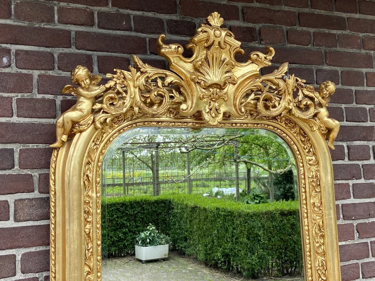 ✅ Authentic French Louis XVI Design – A sophisticated blend of classic and luxurious elements ✅ Gold Leaf Frame – Hand-applied finish for an elegant, radiant look ✅ Ruby Red Velvet Accents – Richly detailed and newly replaced ✅ Versatile Placement – Wall-mounted or console-standing options ✅ Restored Condition – Professionally refinished for long-lasting beauty